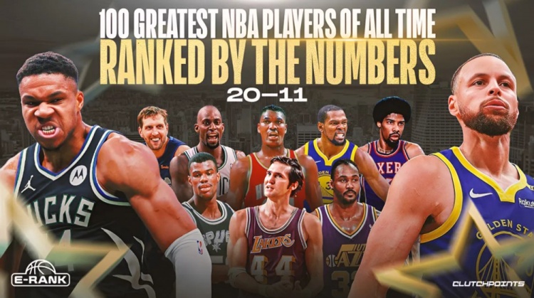 9月12日讯 著名媒体Clutch Points利用其旗下记者Josh Eberley创造的"E-Rank"的计算公式,评选了NBA历史球星Top100,今天更新了第20-11位: